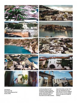 DieFotos entstammen offenbar keinem realen Film, sondern einem medialen Recycling. Es sind abfotografierte Bilder aus Zeitungen und Zeitschriften, manchmal aus einem anderen Film oder einem Buch, es sind Zeichen die aus ihrem Zusammenhang gelöst und neu arrangiert wurden. Dabei bleiben mitunter Reste ihrer ursprünglichen Bedeutung an ihnen haften, wiez.B. in „Der Trek“, wo William und Kate fernab von Windsor ihre ganz eigenen Regeln für das Überlegen in der Apokalypse aushandeln.